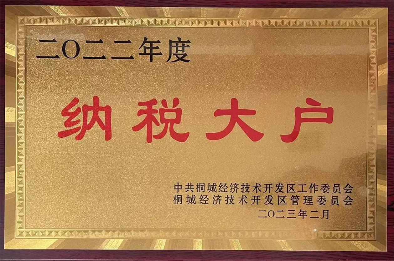 2023年2月,在桐城市经济技术开发区高质量发展总结表彰大会上,安徽新利体育环保(集团)股份有限公司荣登光荣榜,获得桐城市经开区2022年度”纳税大户“荣誉称号。